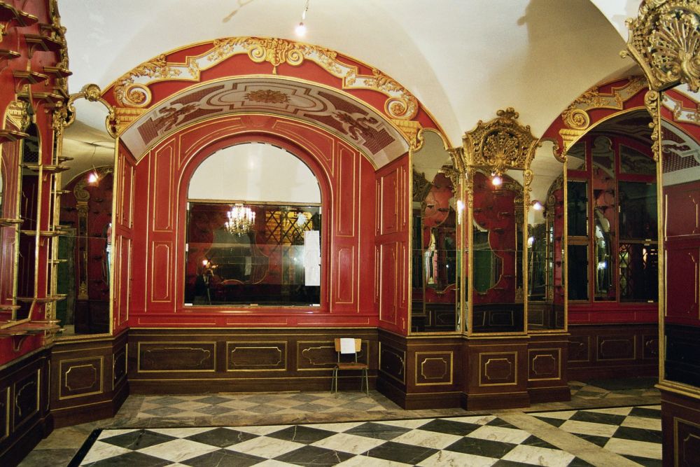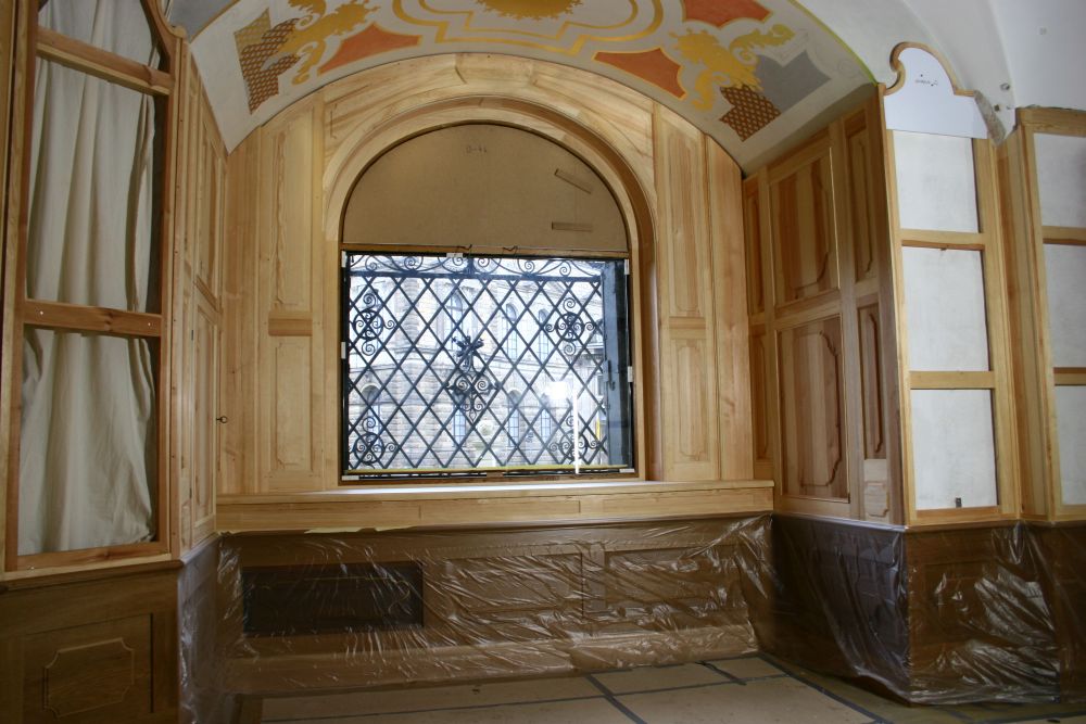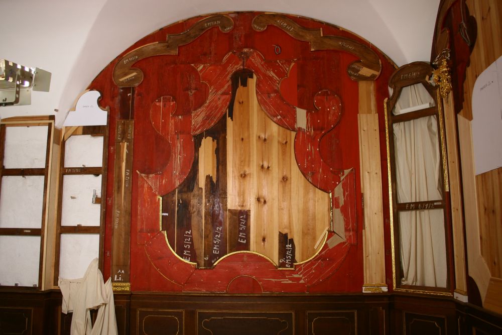 - Freilegung der originalen Zinnoberfassung der Raumausstattung aus der Zeit Augusts des Starken.