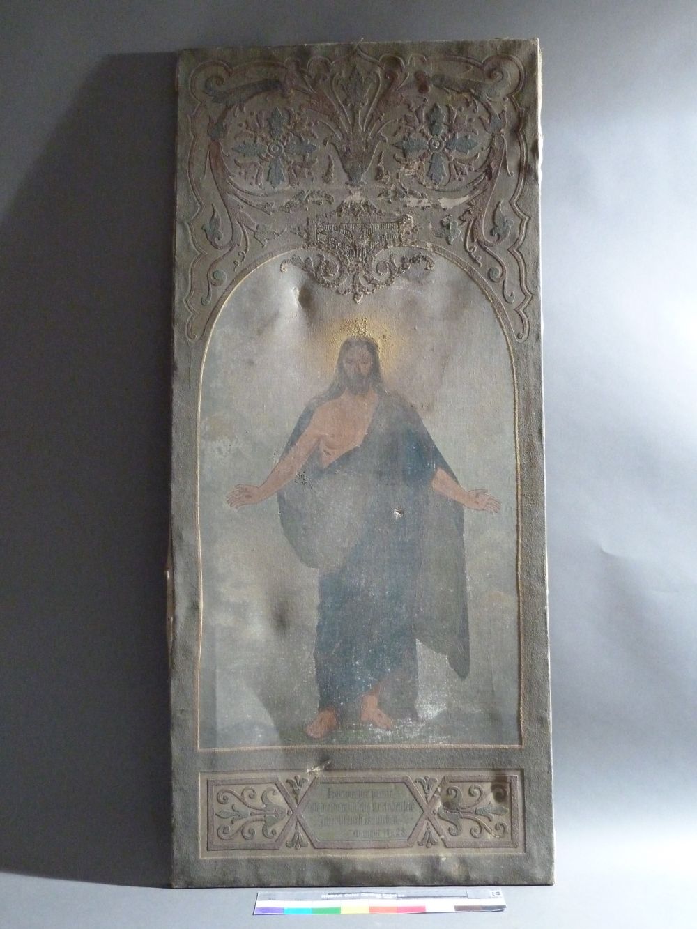 Ölgemälde auf Leinwand, Randbereiche und Ornamentik gesandelt